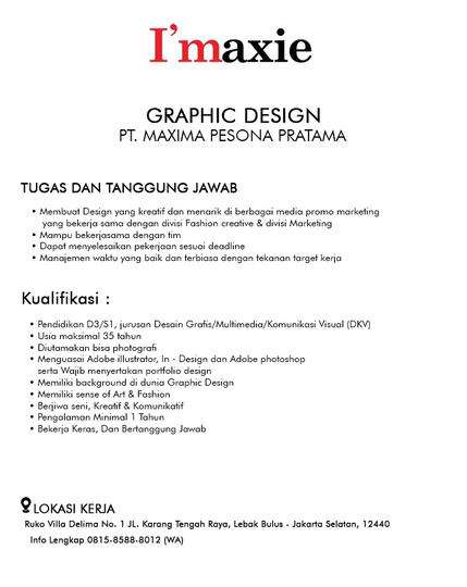 Tertarik- bisa hub kami di 081210334536. Dengan mengoptimalkan operasi perusahaan dan menawarkan pelatihan mendalam secara lengkap untuk semua karyawan perusahaan PT Maxima Pesona Pratama dalam hal tersebut mampu mengembangkan kekuatan dan kemampuan yang memungkinkan perusahaan untuk. Lowongan di Maxima Pesona Pratama PT.